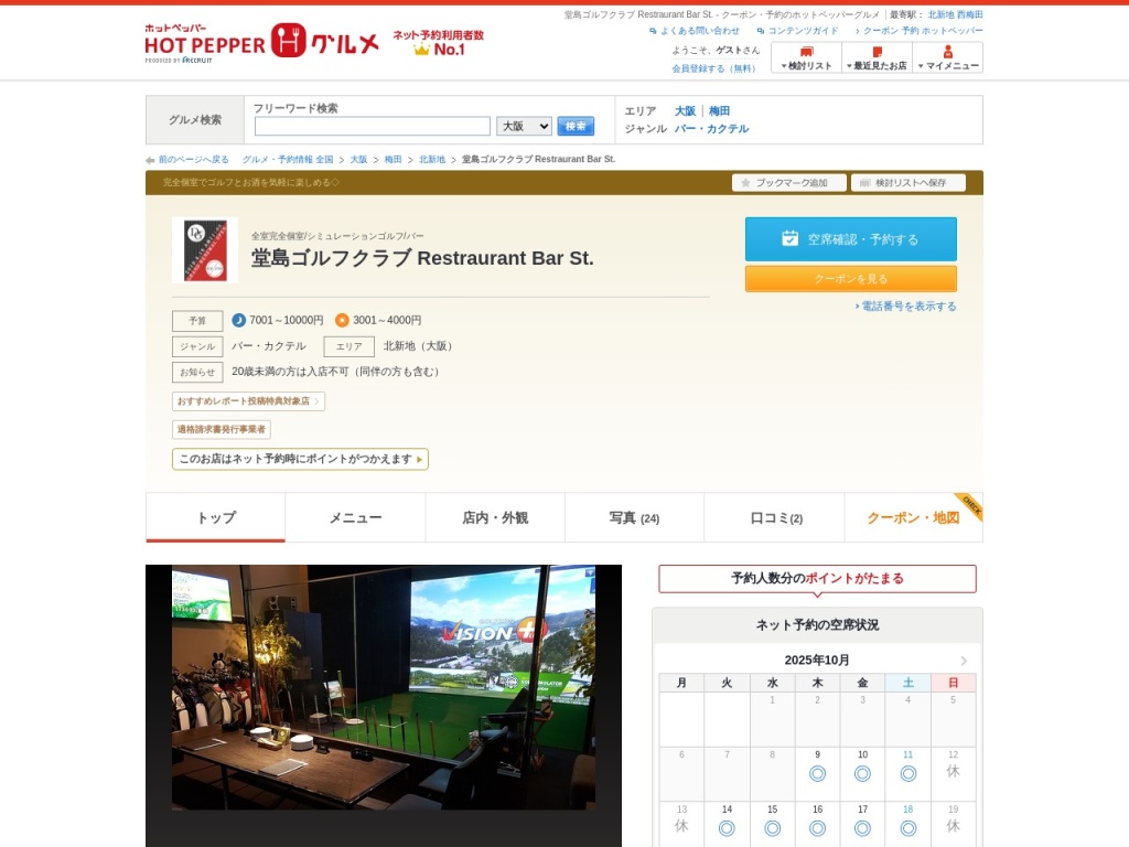 堂島ゴルフクラブ | 完全個室制、最新シミュレーション | ★★★★★ | 10:00〜翌3:00 |